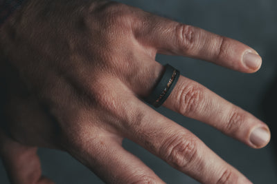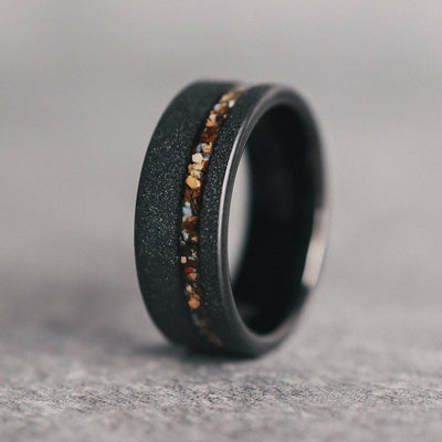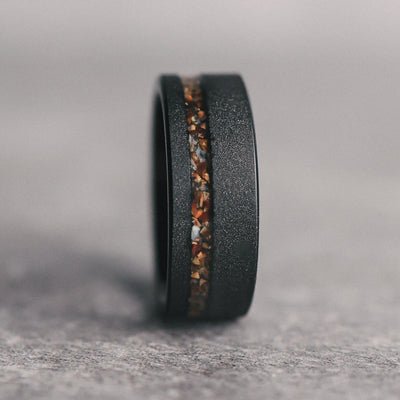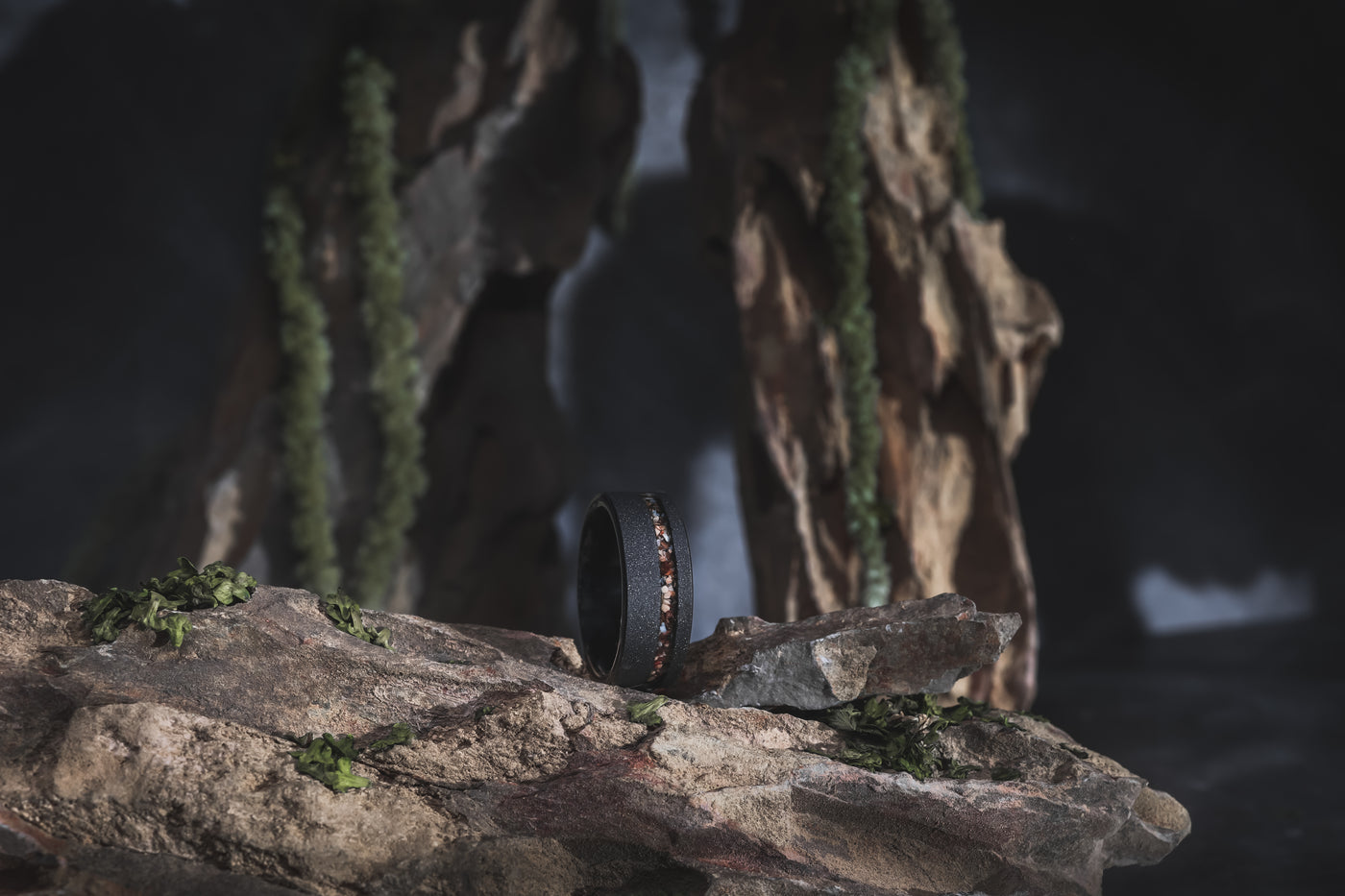 The distinctive inlay is paired with Thorum's signature sandblasted gunmetal black tungsten carbide, forging prehistory with the modern era. We made this band, because we were viscerally compelled to.