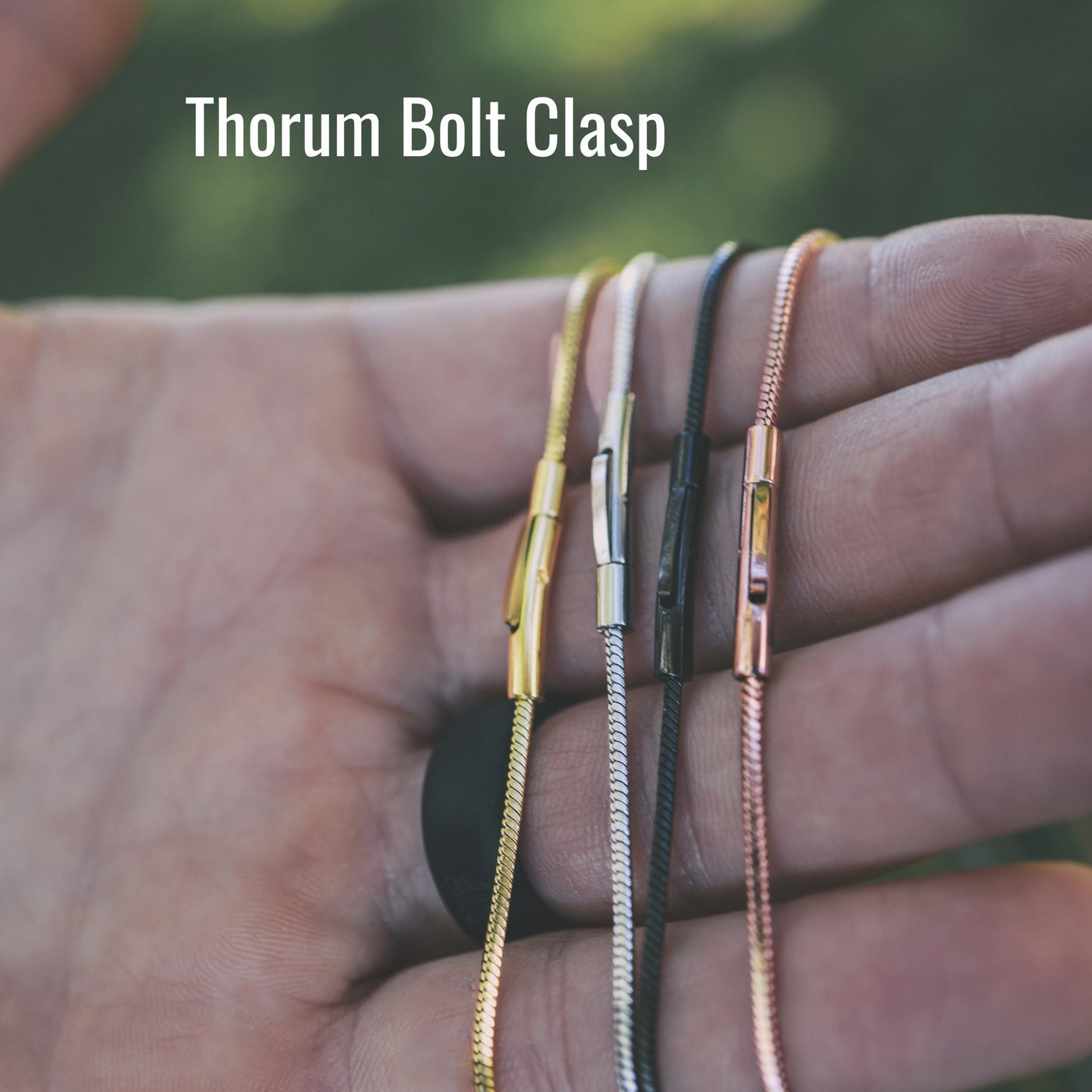 Outfitted with a unique Thorum bolted clasp, it's simple to put on, and take off with only one hand.