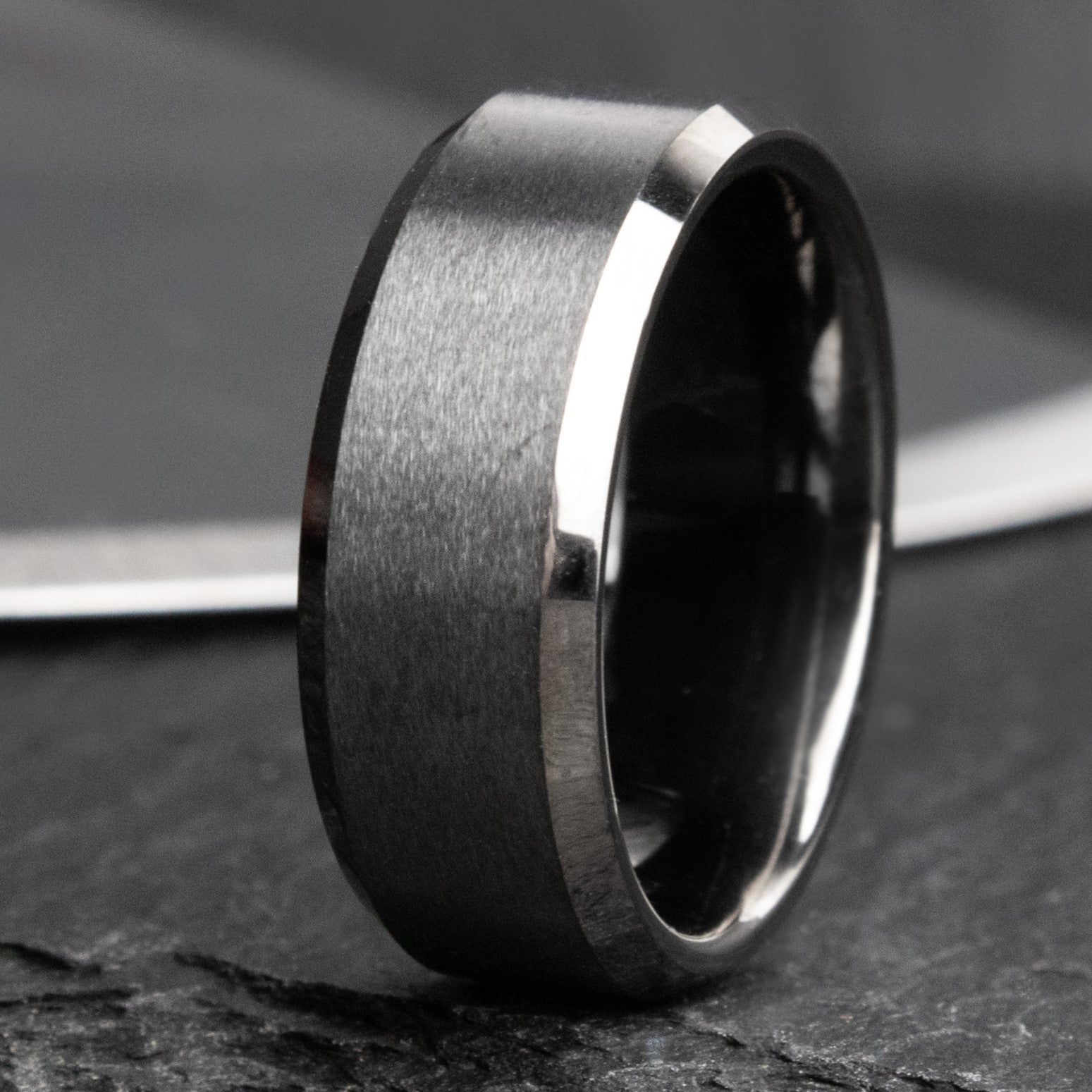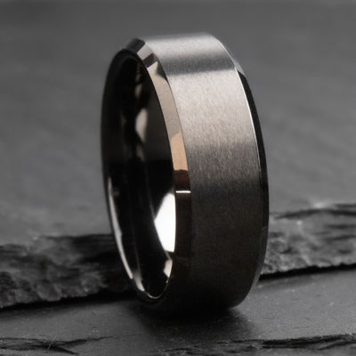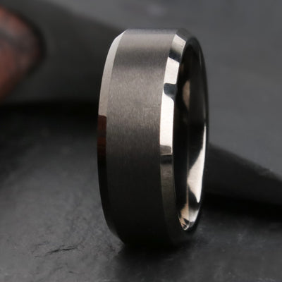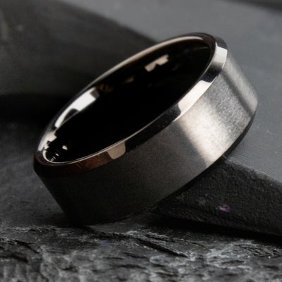 Kratos, the Greek God who personified strength. This minimalist wedding band is the quintessential modern ring. No bells, no whistles. Just an attractive sandblasted gray exterior - that will always look exactly like the day you got it (wish I could say the same about myself after 10 years of marriage).