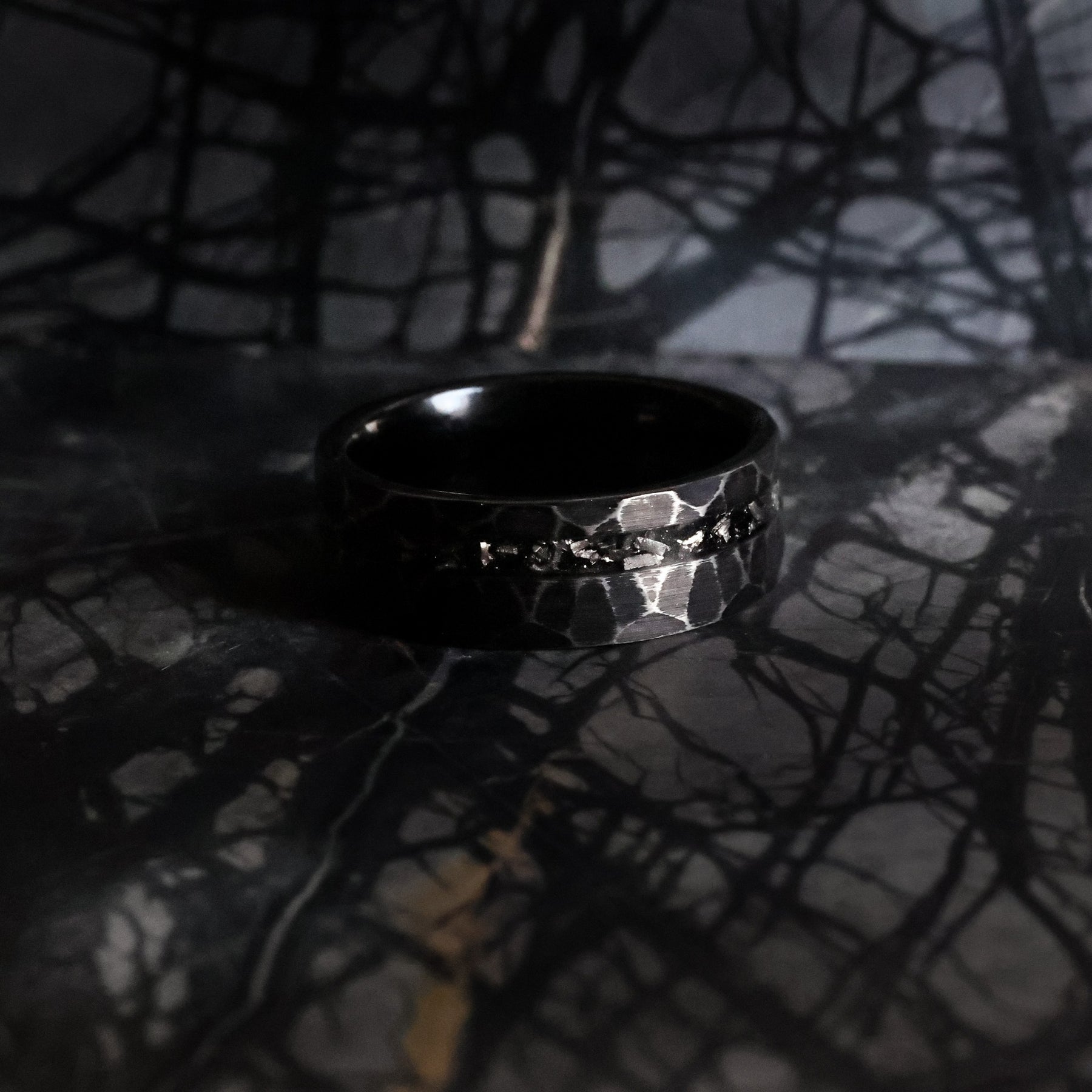 The Voyager was crafted from rustic black Tungsten Carbide, and authentic 4 billon year old Gibeon meteorite.
