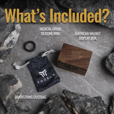 Every Thorum ring includes a medical grade silicone band, a drawstring bag, and a unique walnut display box.